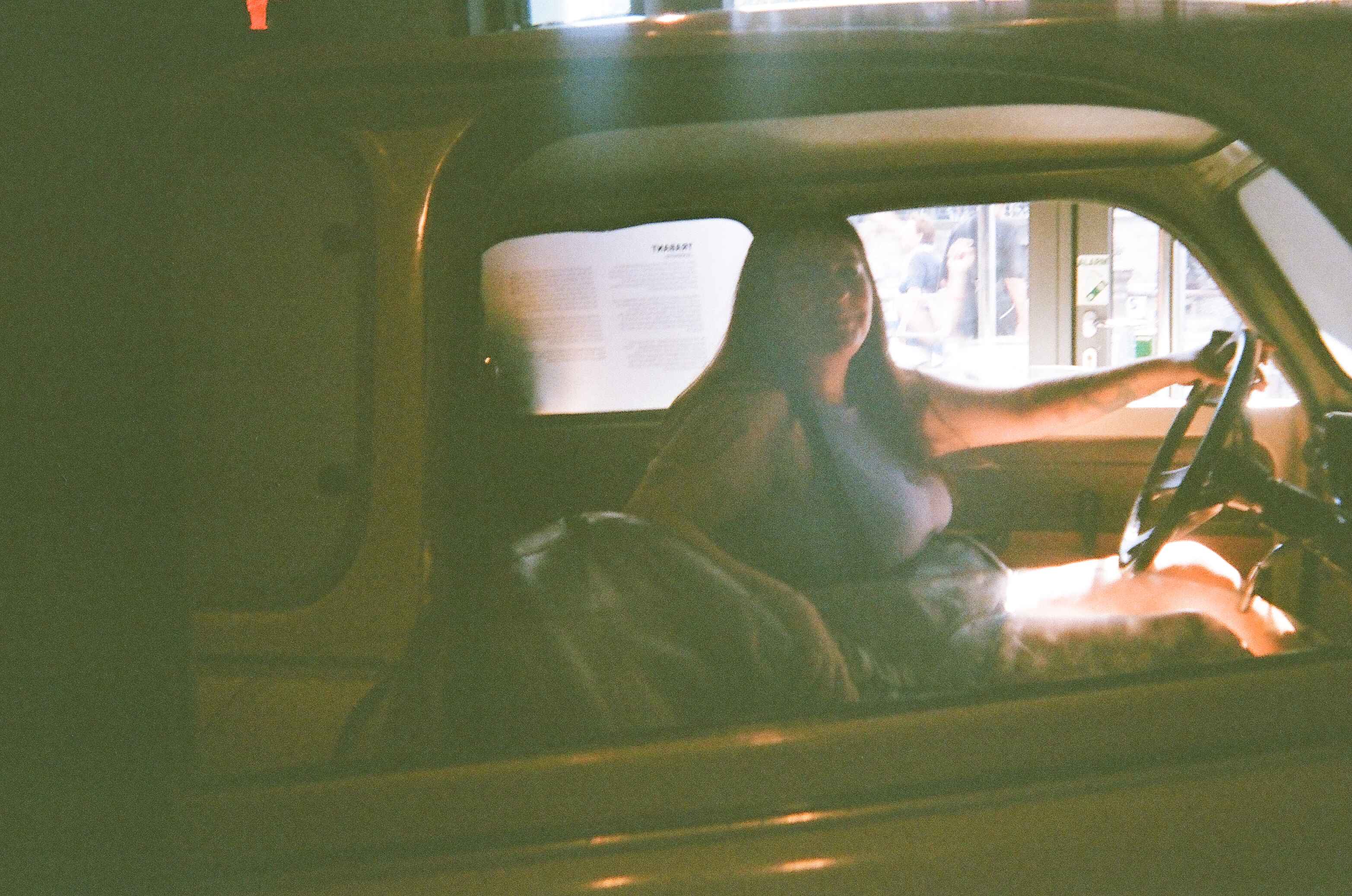 Beth in a Trabant at the DDR Museum
