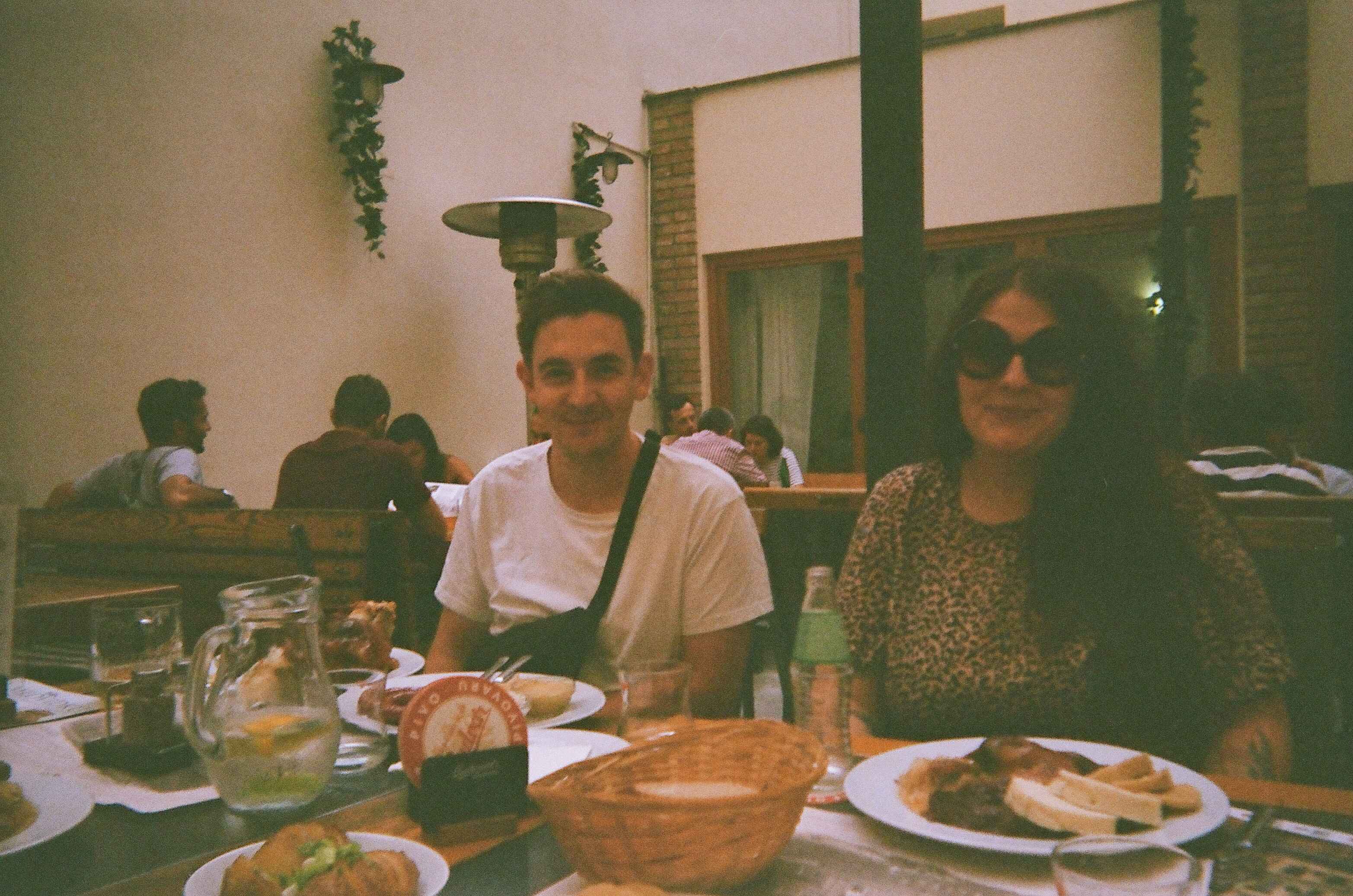 Max and Beth at a restaurant in Prague