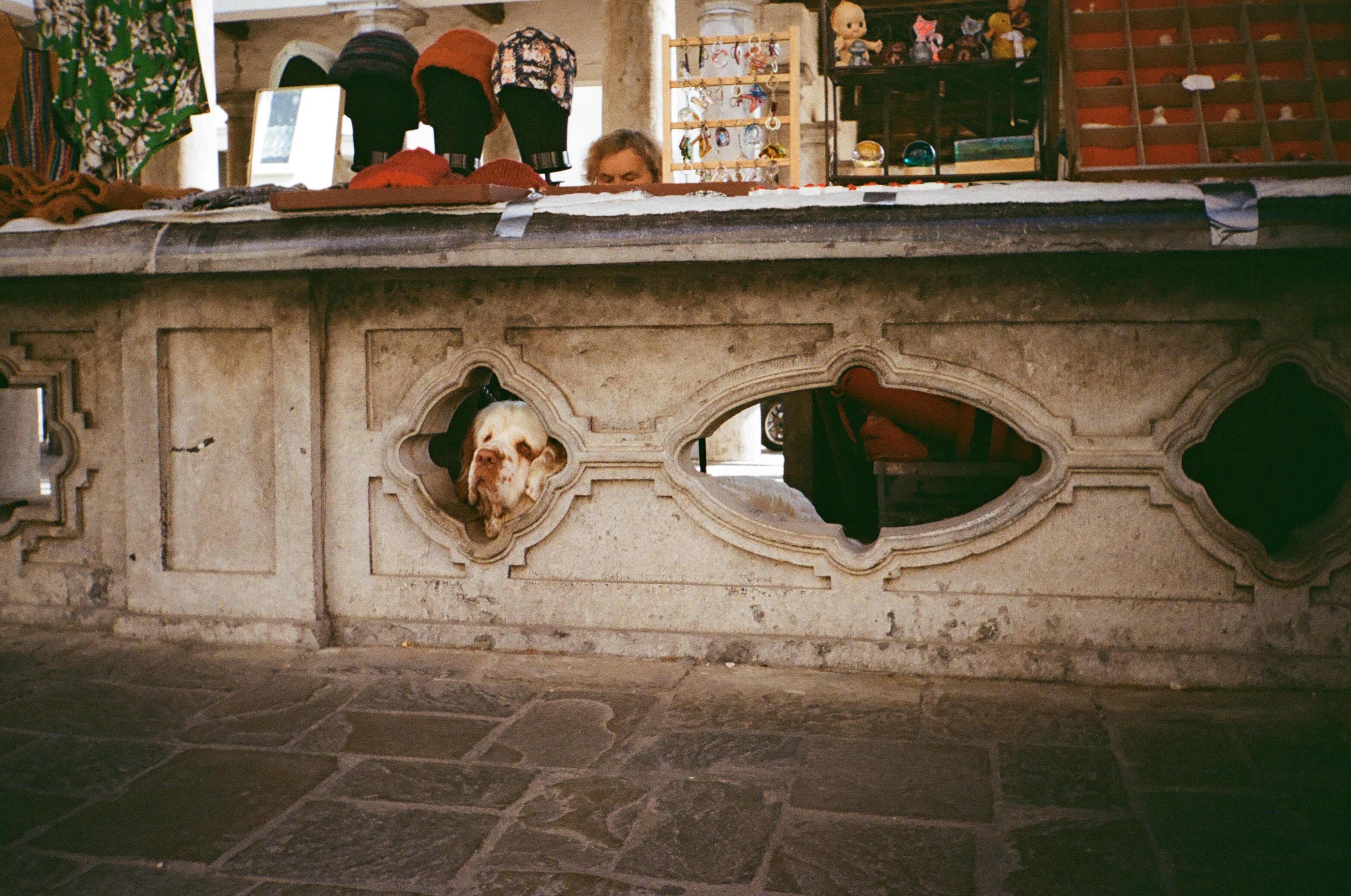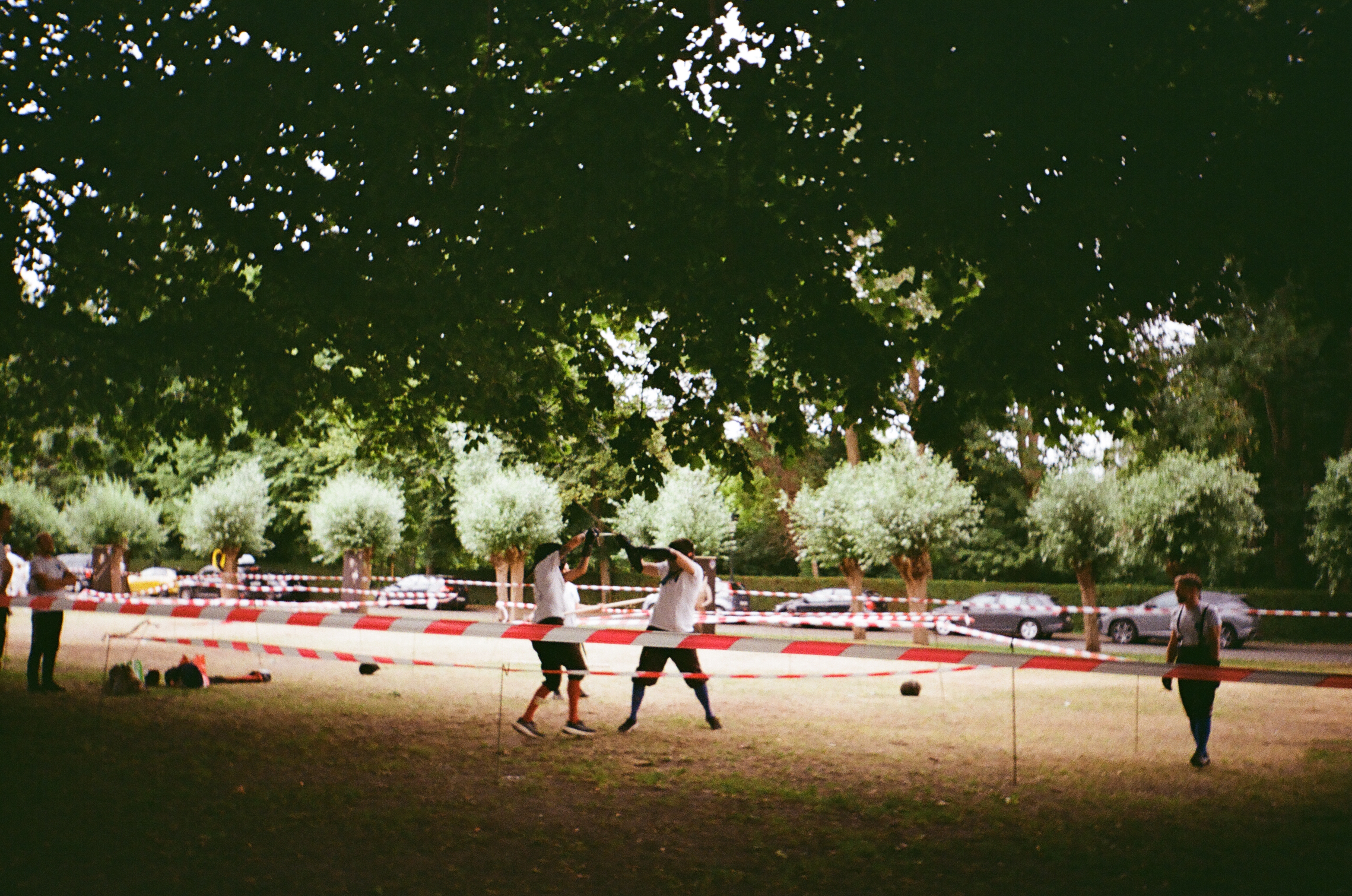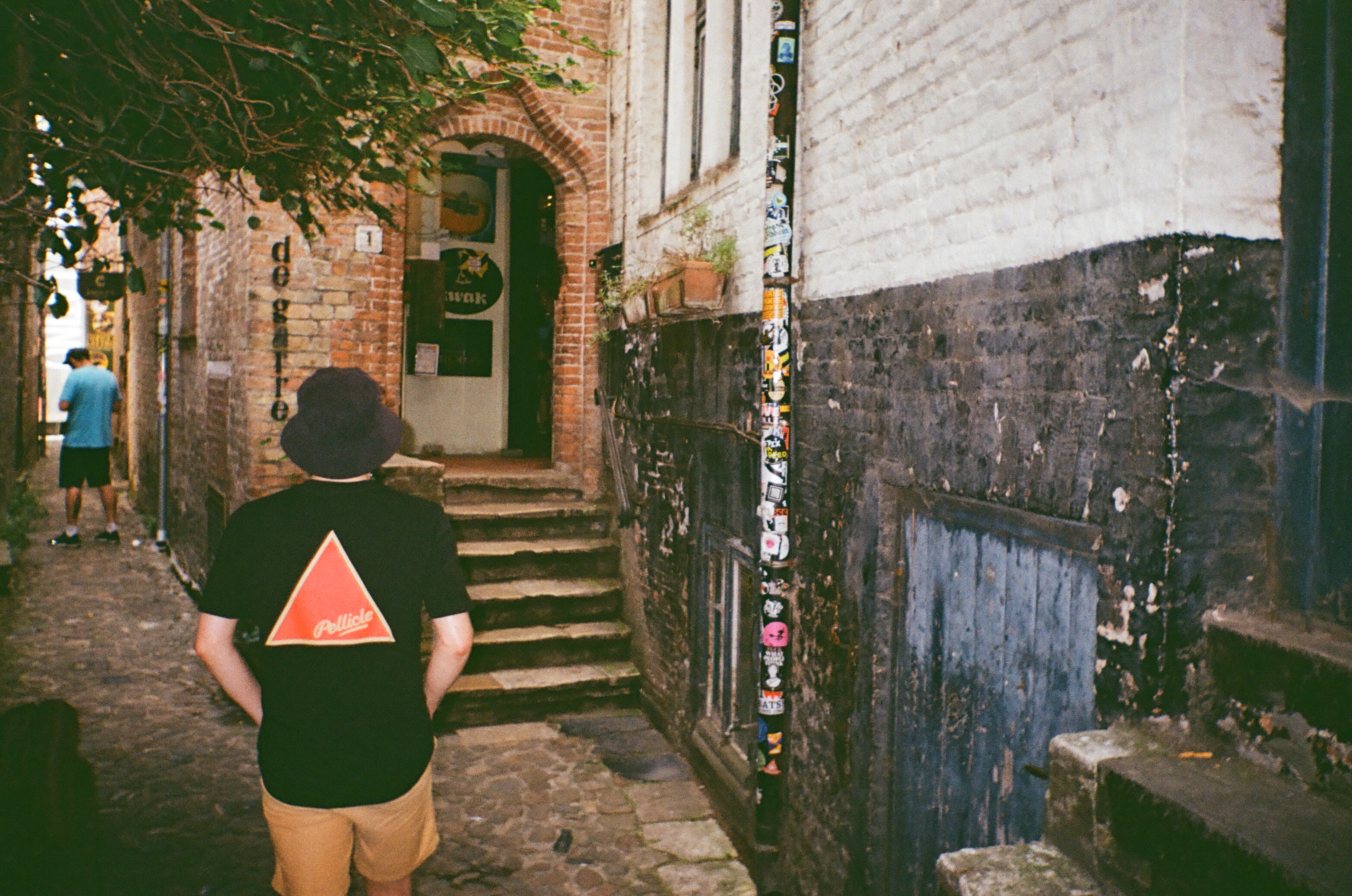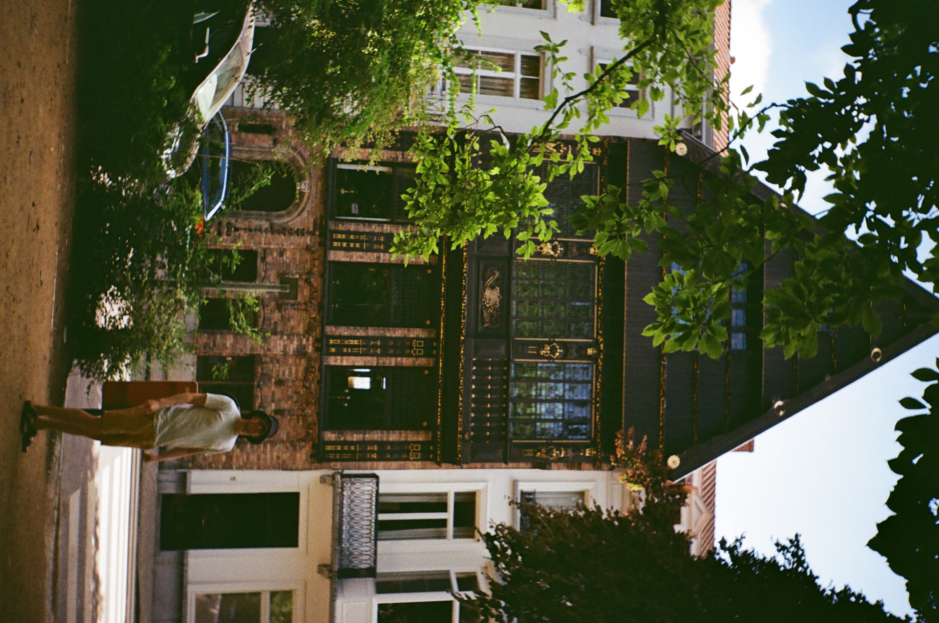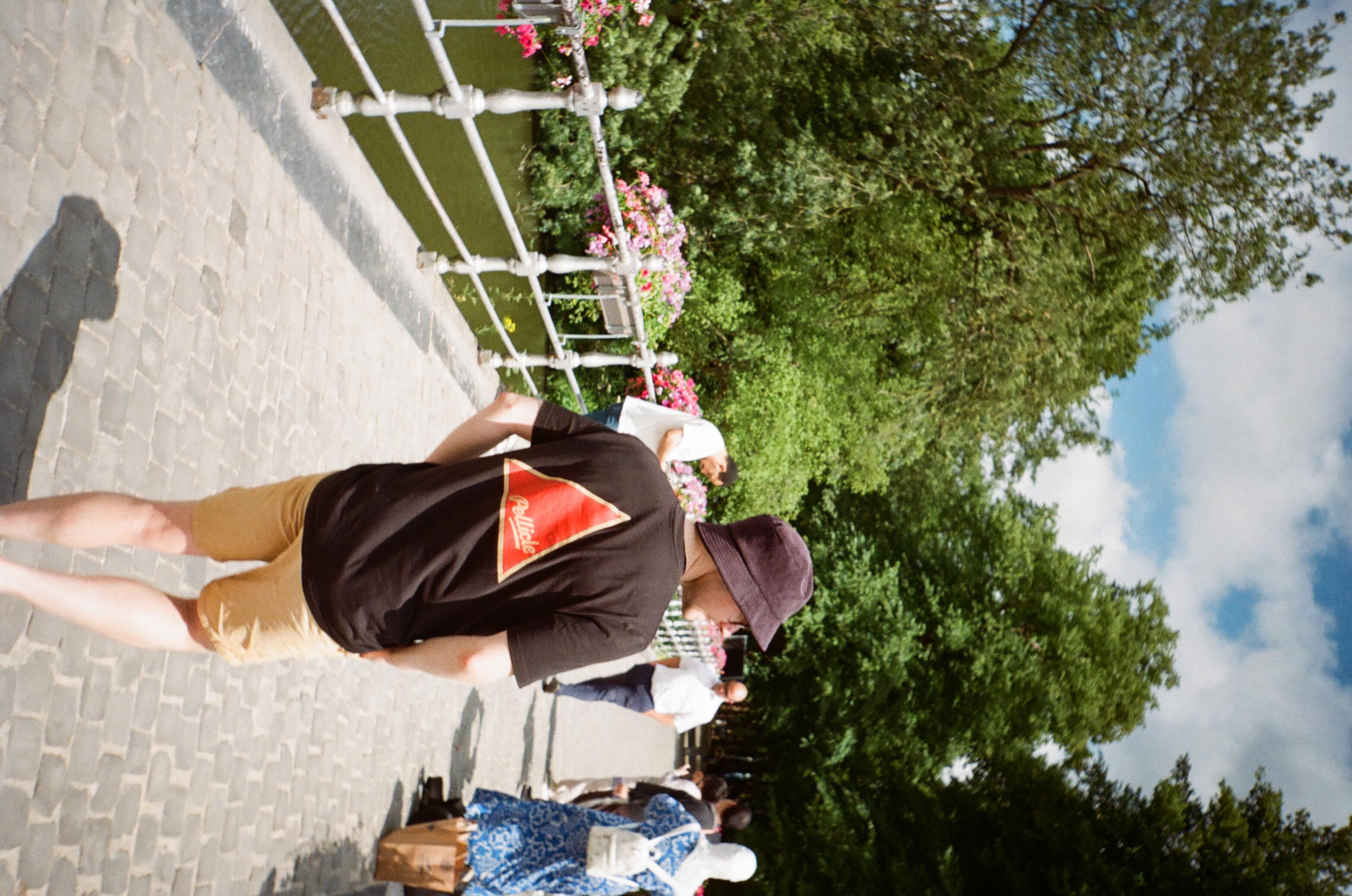 Fred walking along a bridge - the sun really made the Kodak colours come out here