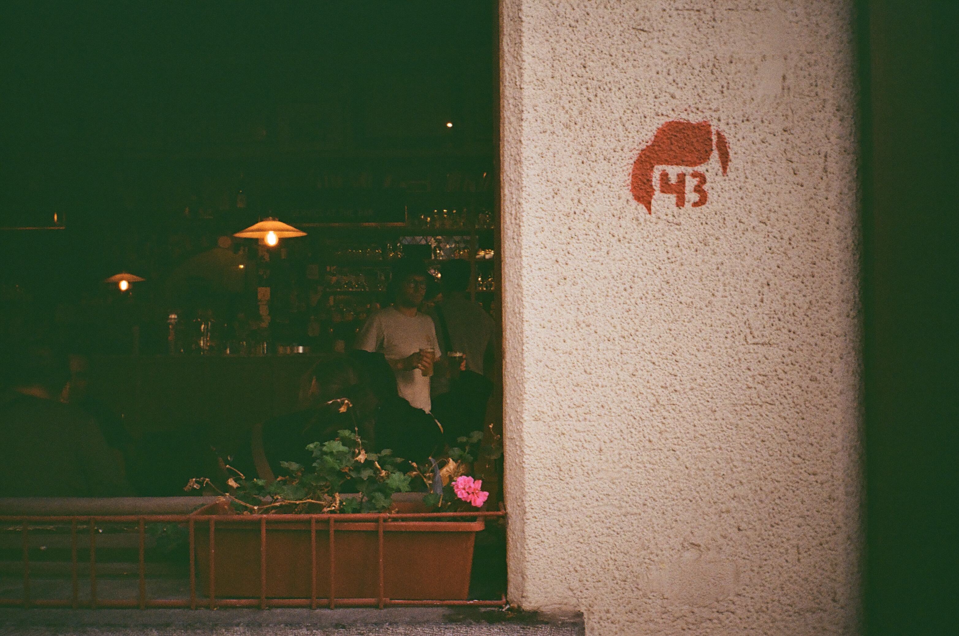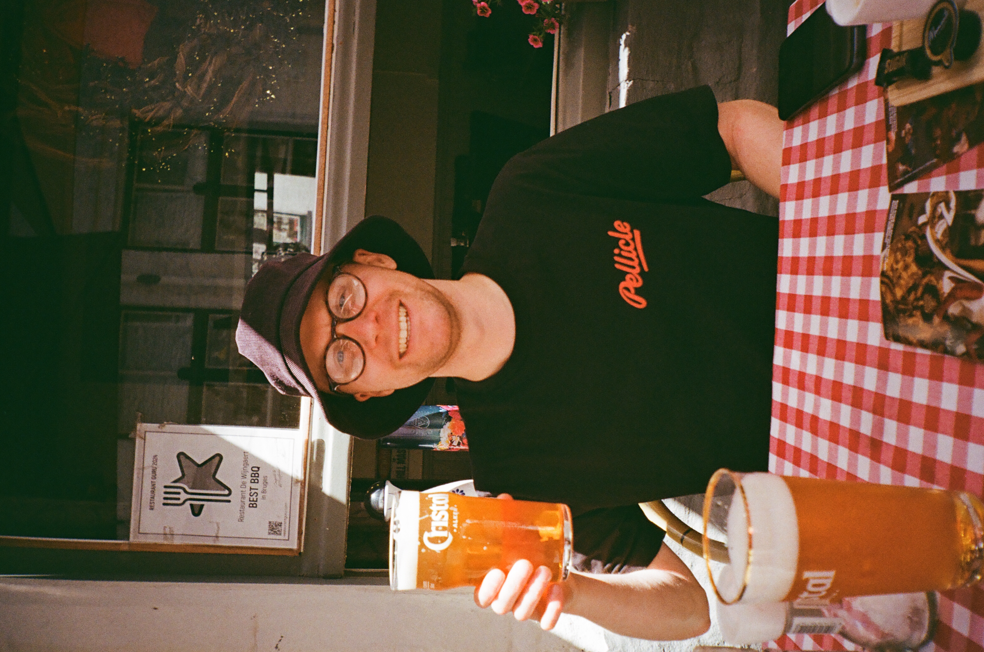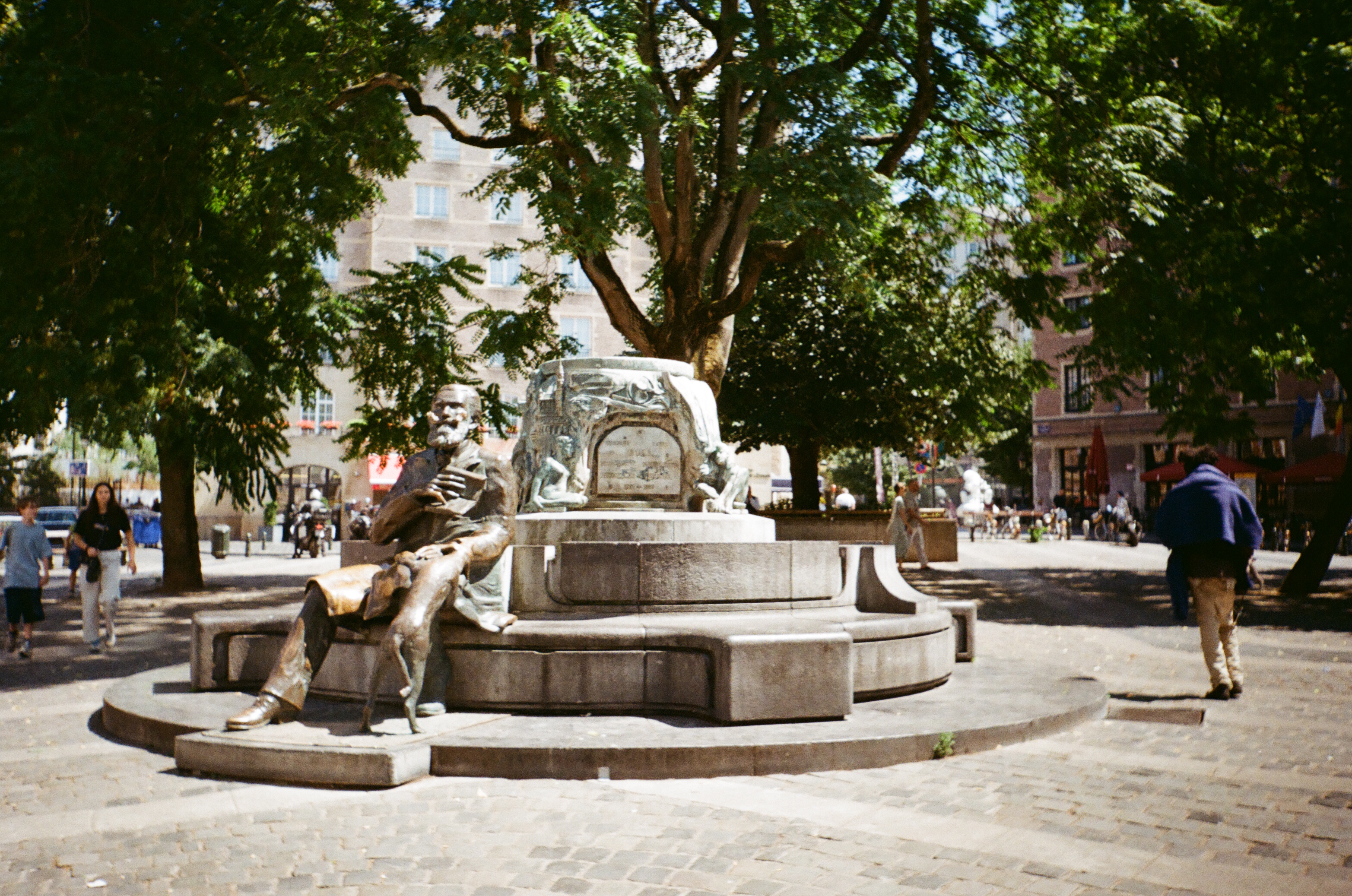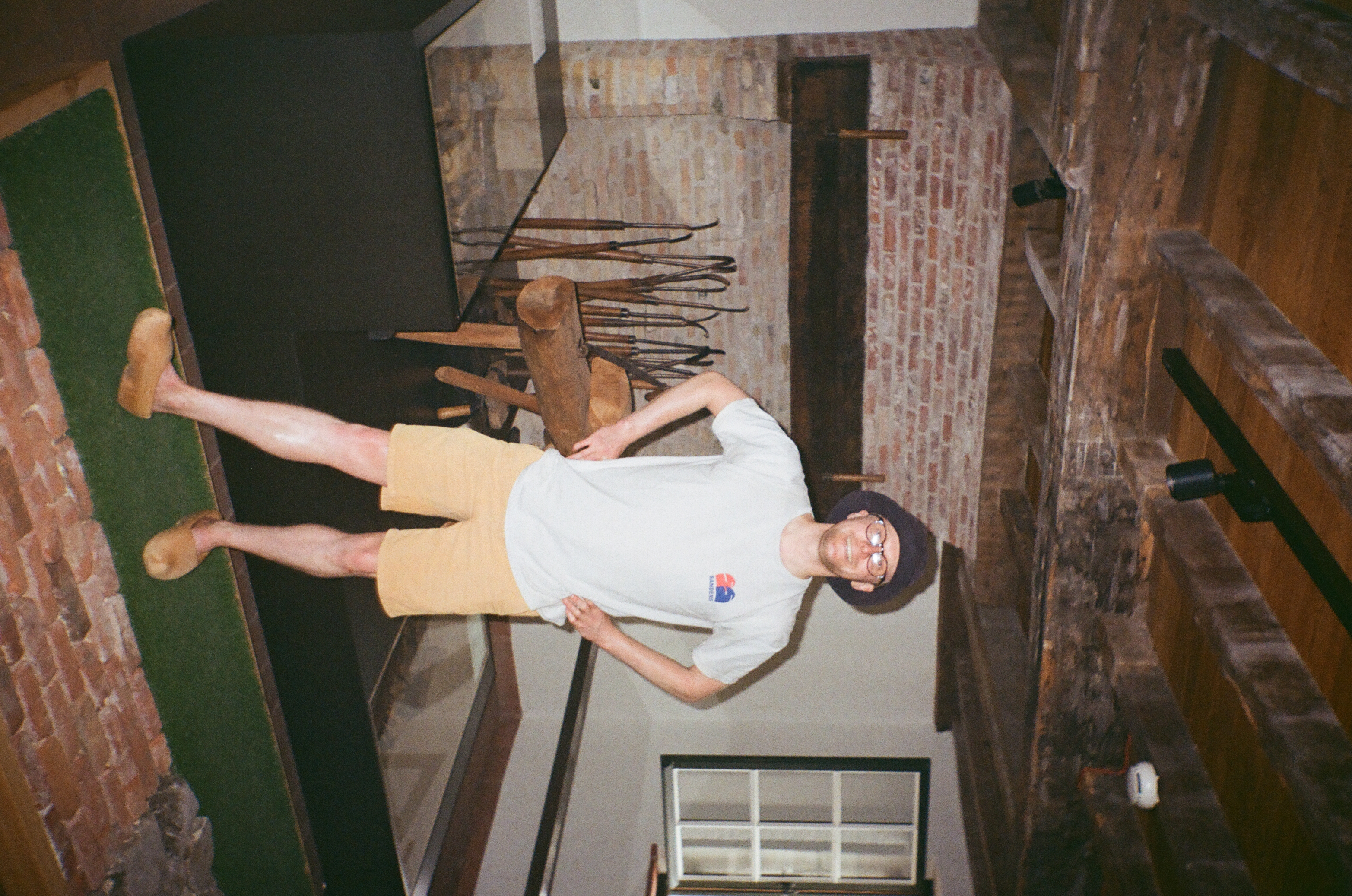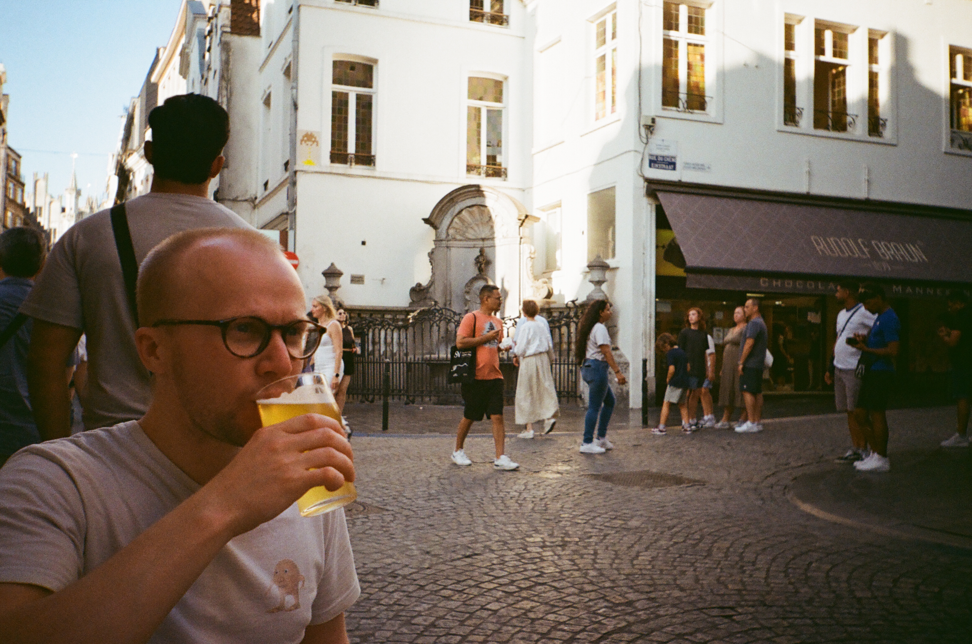 Fred walking along a bridge - the sun really made the Kodak colours come out here