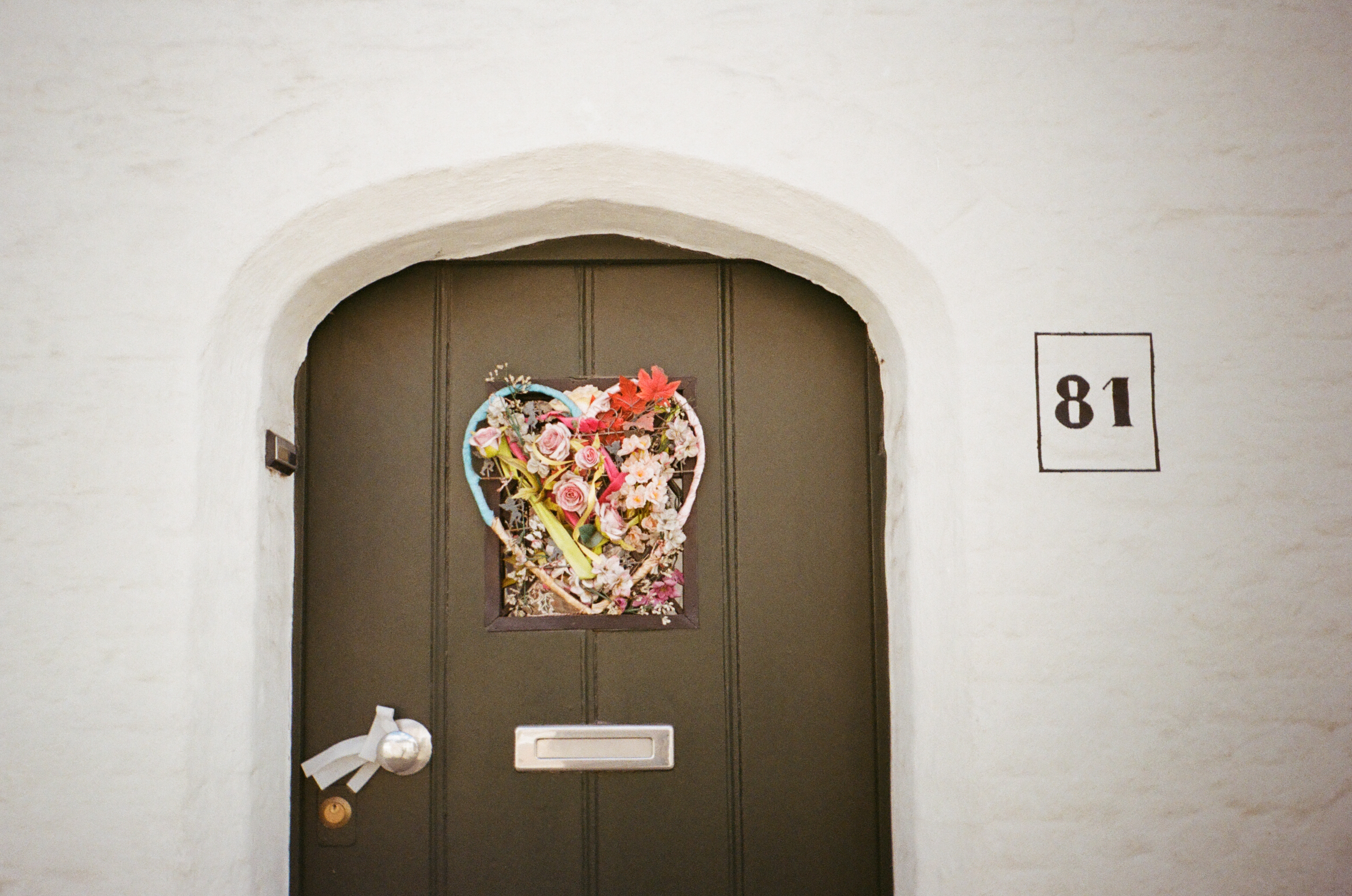A pretty garland on a doorway. A lot of the houses had window displays or door decorations.